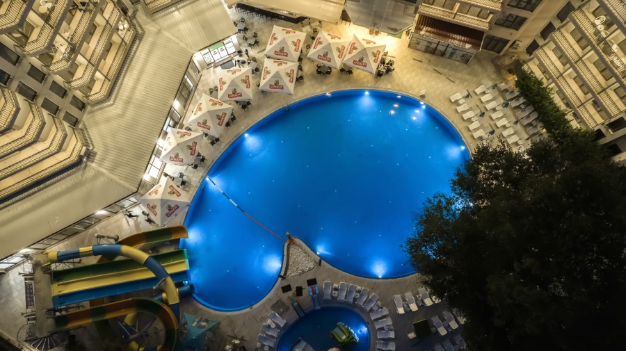 Насладете се на чаша ароматно кафе или освежаващ коктейл край басейна. Барът е част от All Inclusive концепцията и предлага селекция от топли напитки, безалкохолни напитки, бира, вино, местни алкохолни напитки, коктейли.